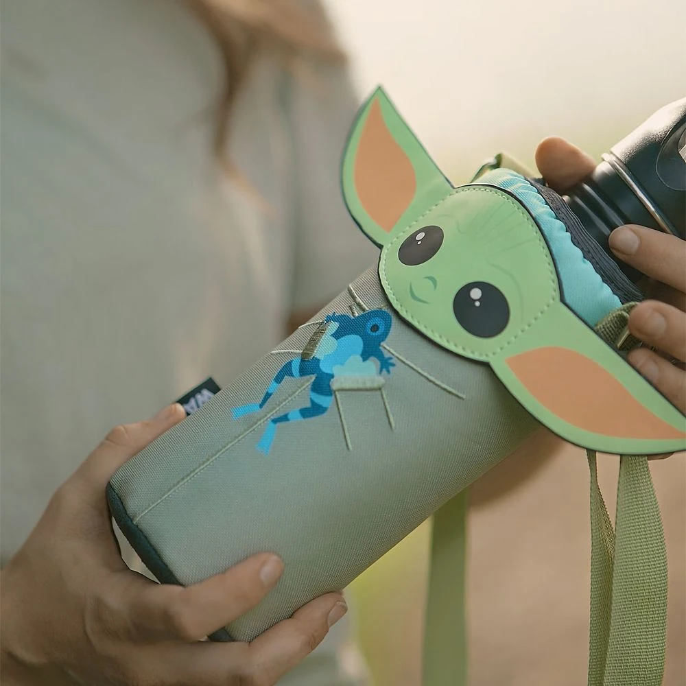 Bring the intergalactic cuteness everywhere you go with this Grogu cooler tote which includes a 24 oz. stainless steel water bottle. Staying hydrated has never been so easy – or so fun! This drink carrier features a stylish and functional Star Wars design, a very handy adjustable shoulder strap, and top-tier insulated cooler technology. With an expandable opening for a secure fit, you can tote the included bottle with ease or swap it out for any 20-32 oz. or 750ml bottle of your choice. This elevated koozie carrier is right at home at work, at school, or kicking around the galaxy with the Mandalorian.