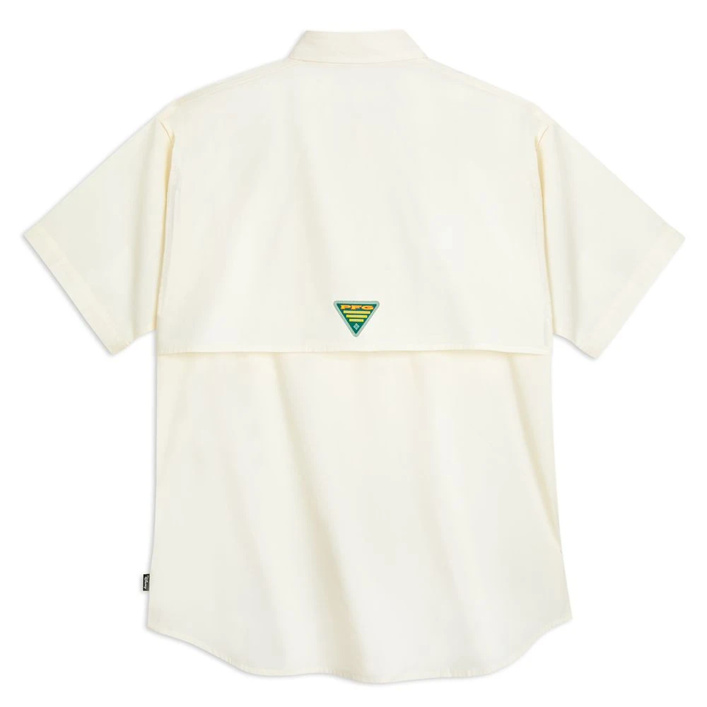 All set for adventure, Mickey walks with a hiking stick, Donald carries a fishing net and Goofy trains his eyes on the skies on this cotton poplin camp shirt. Durable and breathable, this Columbia PFG (Performance Fishing Gear) button down shirt features plenty of convenient pockets, utility loops and a mesh vent on the back. With Omni-Shield advanced repellancy, it will help keep you cool and comfortable whether you’re fishing, hiking or just enjoying whatever the day brings.