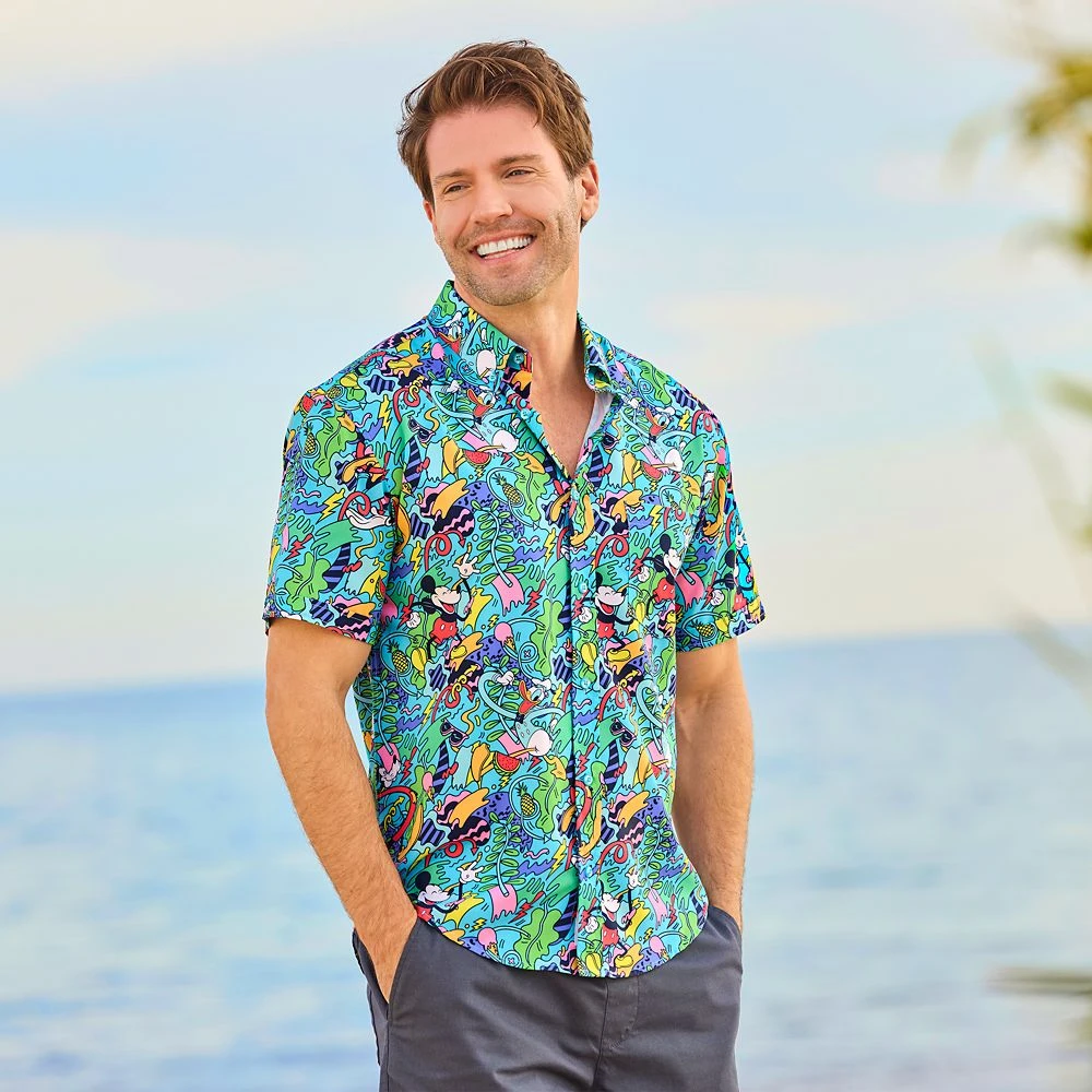 Mickey is joined by some of his friends in the crazy and colorful allover print on this shirt by RSVLTS. The classic button down styling is definitely on the wild side with its contemporary artwork on RSVLTS’ proprietary KUNUFLEX fabric that’s designed to keep you cool.
