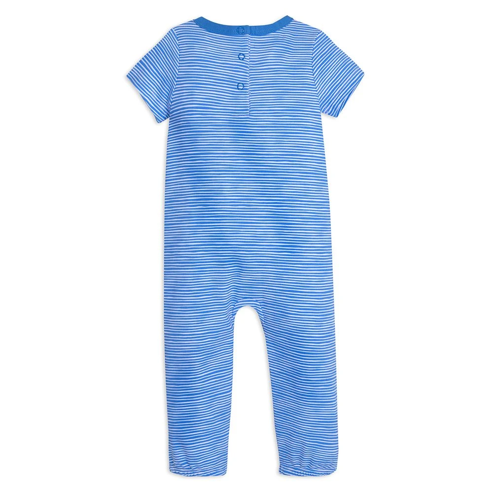 Baby will love spending the summer in the company of Mickey when they wear this soft cotton bodysuit. The sun shines on Mickey as he strides across the front of this striped short sleeve outfit that provides a colorful greeting of ”Hey!”