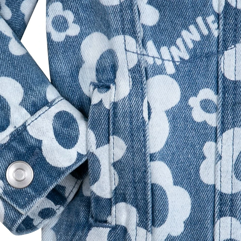 Minnie brings her contemporary sense of style to a fashion classic with this denim jacket. A bold allover floral print, complete with ”Minnie” namechecks, transforms this timeless top into a chic favorite for your little cutie. Topped with Minnie’s face embroidered on the chest, this will inspire smiles wherever they go.