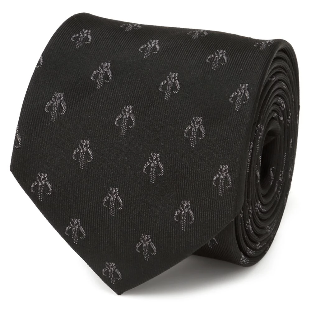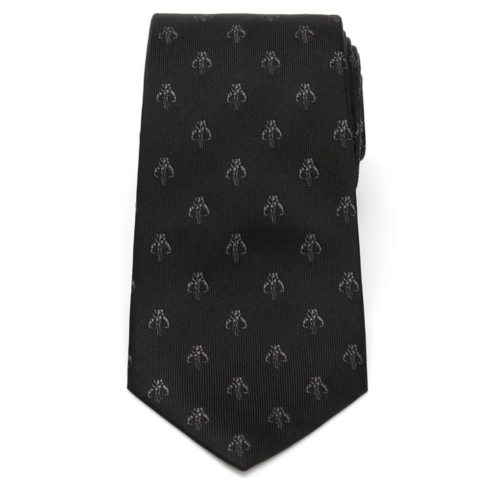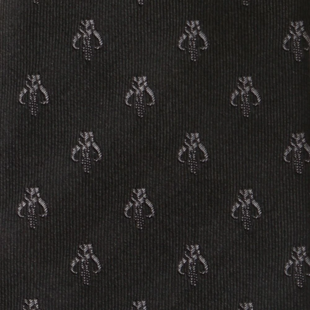A woven gray Mythosaur skull pattern offers a subtle contrast to the black of this silk tie while making an epic style statement. The tuck loop in back features the Star Wars logo.