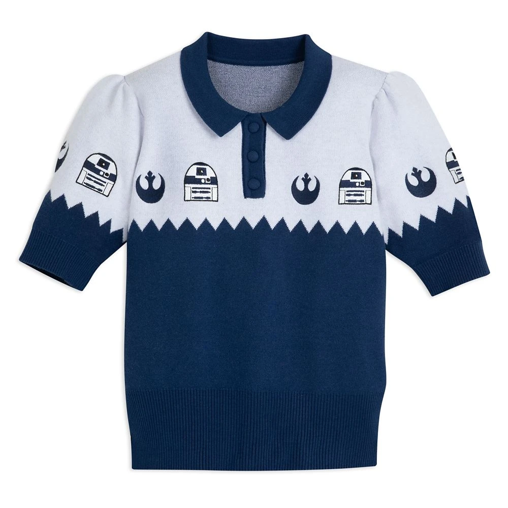 There’s one word for this R2-D2 knit polo by Her Universe and that’s ”adroidable!” Actually, there’s plenty to say about this galactic charmer featuring embroidery of R2-D2 and the Rebel Starbird insignia all around the front and back. So very stylish and comfy, this 100% cotton top has slightly puffed short sleeves, a three-button placket and rich navy coloring that make it the shirt you’ll want to wear for a long, long time.