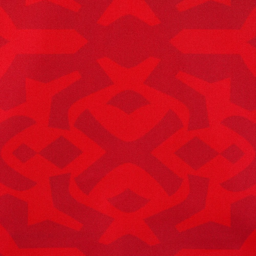 - Red simulated leather patch with debossed design