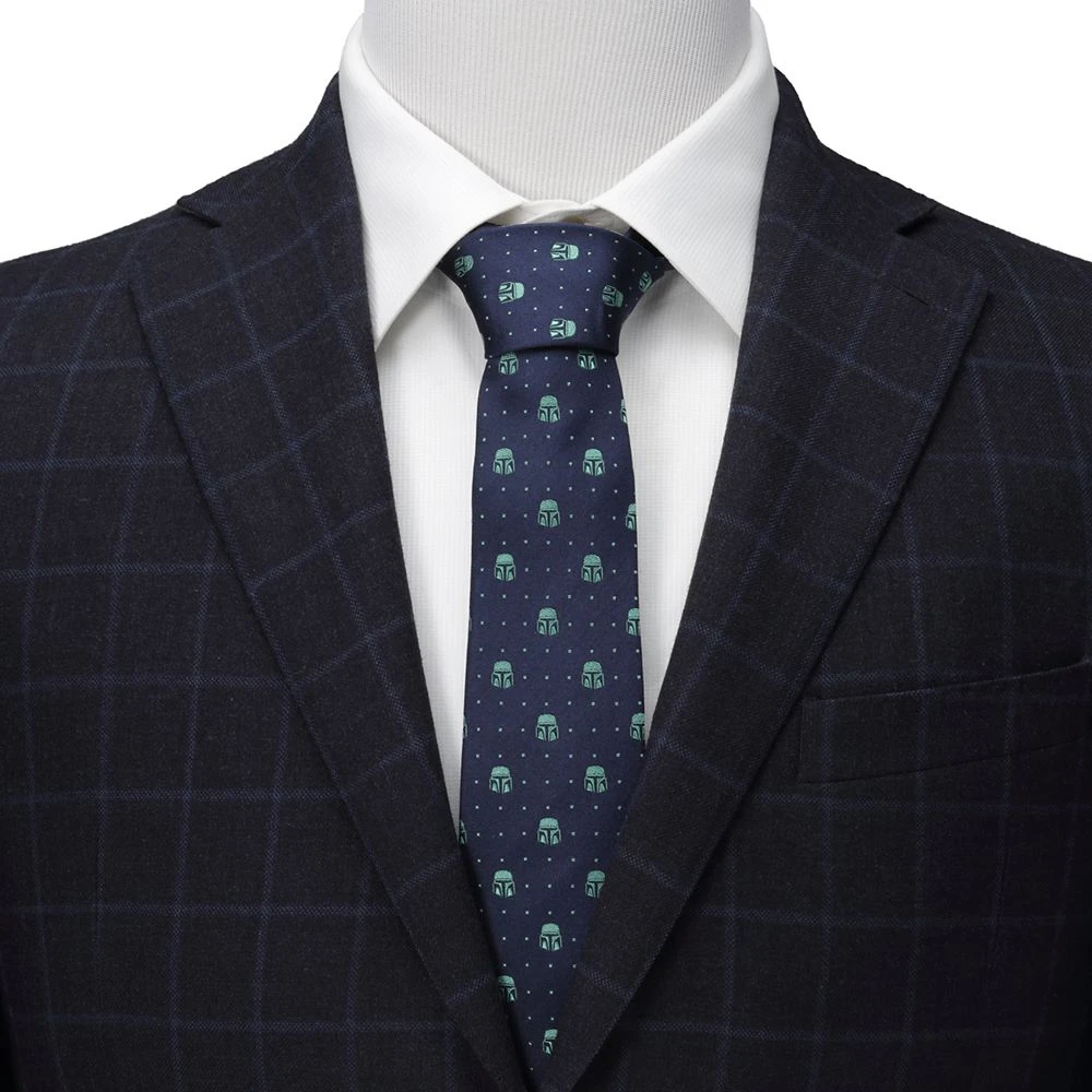 Now fans of Star Wars: The Mandalorian big and small can outfit their formal look in epic style with this silk tie gift set. The adult tie features a woven green Mandalorian helmet pattern while the kids size features Grogu, also known as ”Baby Yoda.” Both have a tuck loop in back featuring the Star Wars logo.
