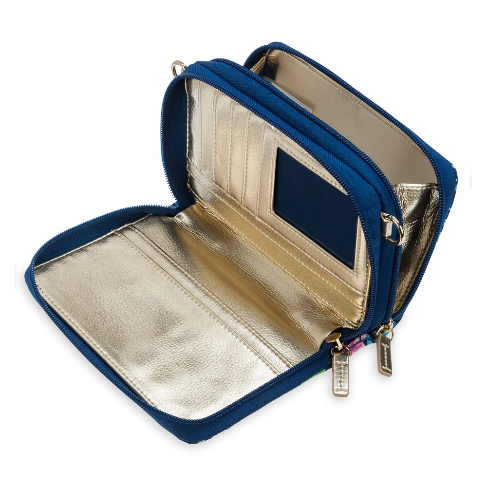 Mickey and Minnie will brighten your day with this colorful crossbody bag from Lilly Pulitzer. Featuring an allover fluorescent floral print incorporating Cinderella Castle, this compact and cute bag comes with a detachable compact mirror on a goldtone chain for convenient access.