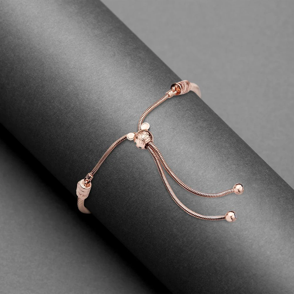 Keep memories of your trips to the Disney Parks on hand at all times when wearing this Fantasyland Castle slider bracelet by Pandora. Hand-finished in 14k rose gold, this piece features a sliding clasp in the shape of a Mickey icon with round brilliant-cut clear cubic zirconias so it’s always going to be a perfect fit.