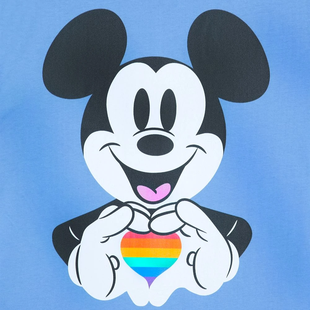 Love is true blue with this Mickey Mouse Pride Heart t-shirt. Featuring screen art of Mickey making a rainbow heart sign, this all-cotton blue tee is so soft and adorable, it’s love at first sight.